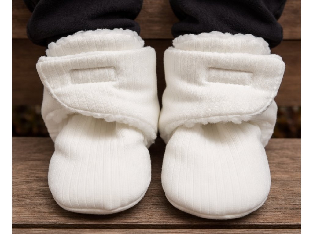 Krásné a hřejivé capáčky pro miminka jsou vhodné jako vrchní bačkůrky do kočárku, do nosítka nebo autosedačky. Podšité jsou příjemným beránkem. Snadno se nasazují a pomocí suchého zipu se přizpůsobí opravdu každé nožičce.
