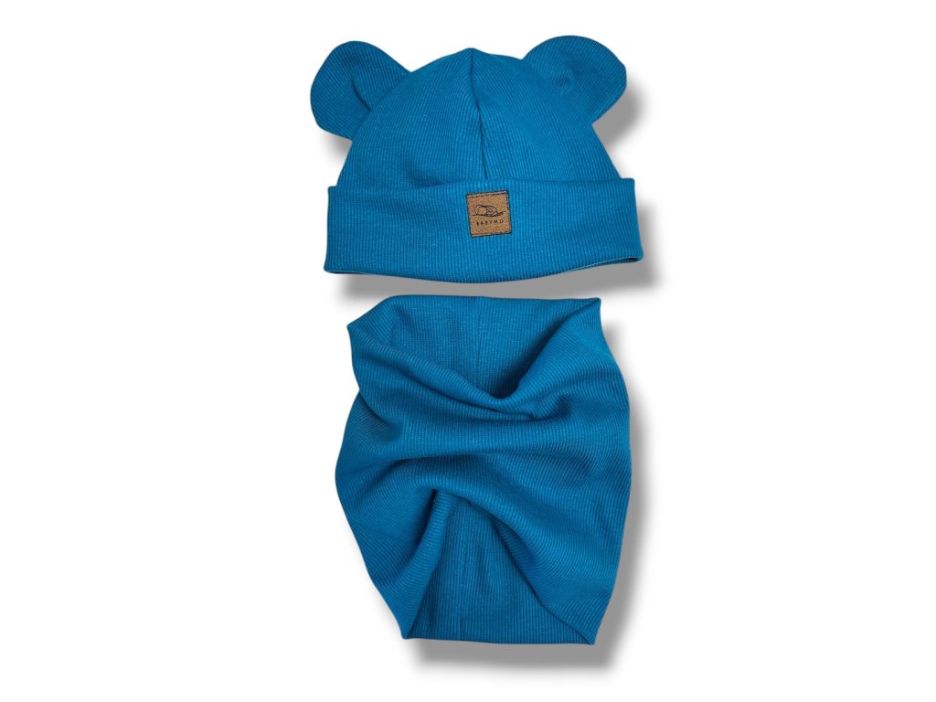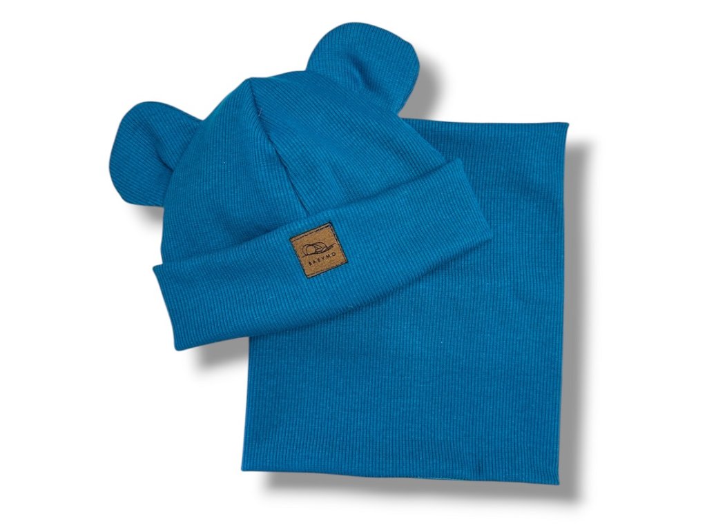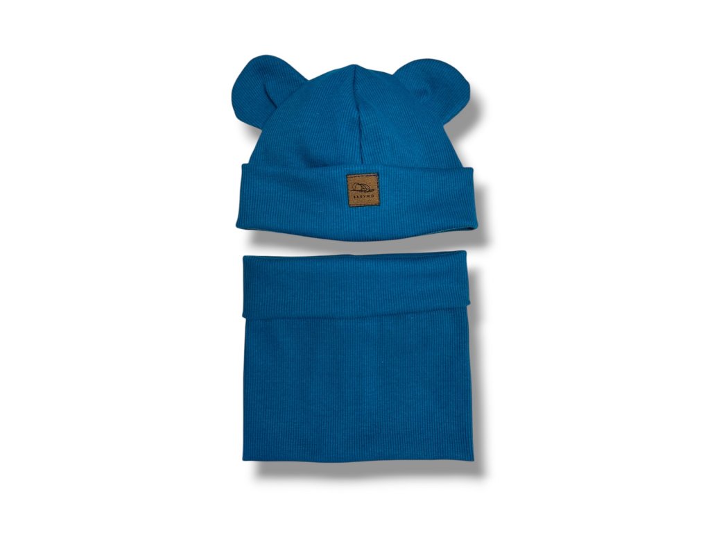Čepička a nákrčník ocelově modrá 0-1 rok