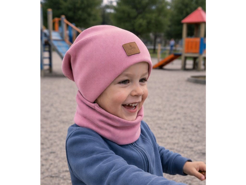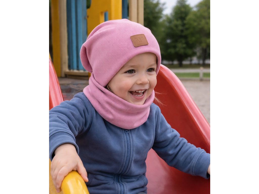 Čepička s nákrčníkem 2v1 starorůžová