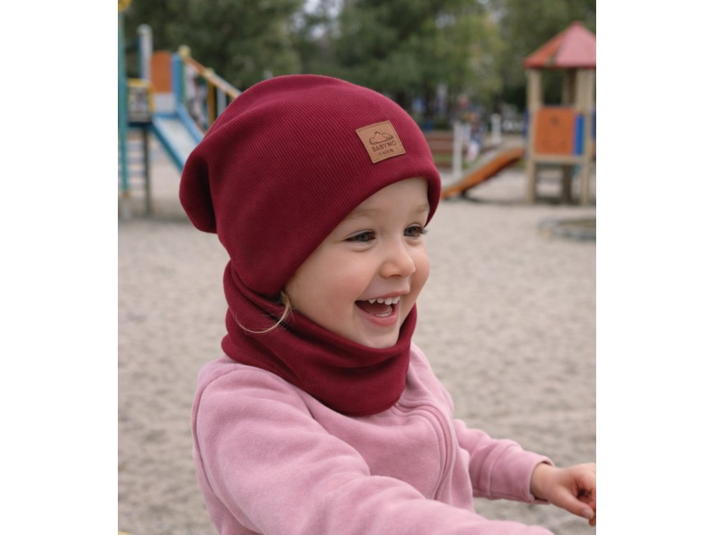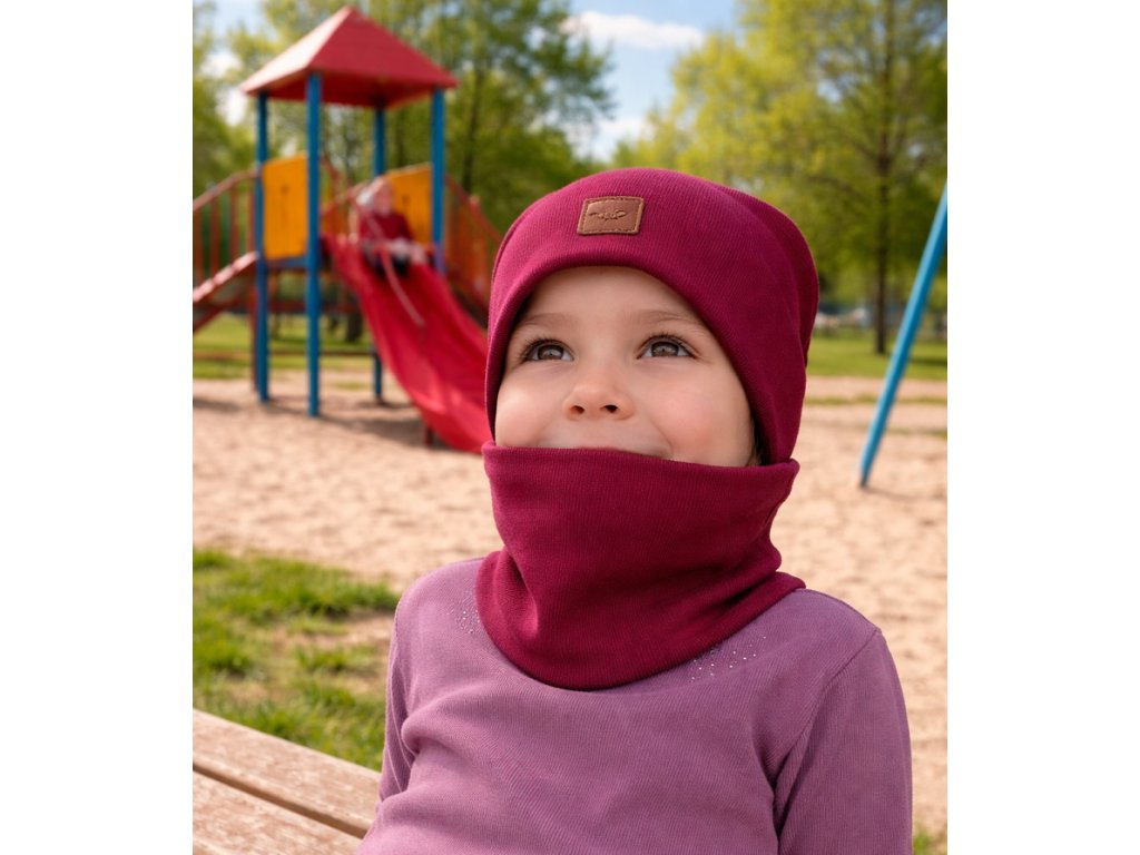 Čepička s nákrčníkem 2v1 vínová