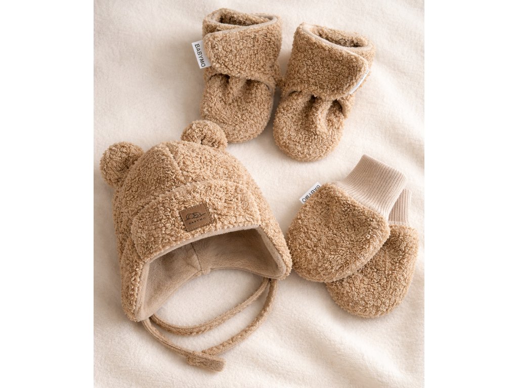 Hřejivá dárková sada, která potěší každého novopečeného rodiče i miminko. Set je ušitý z měkoučkého beránkového materiálu a zateplený certifikovaným fleecem, díky čemuž spolehlivě zahřeje i v těch nejchladnějších zimních dnech.