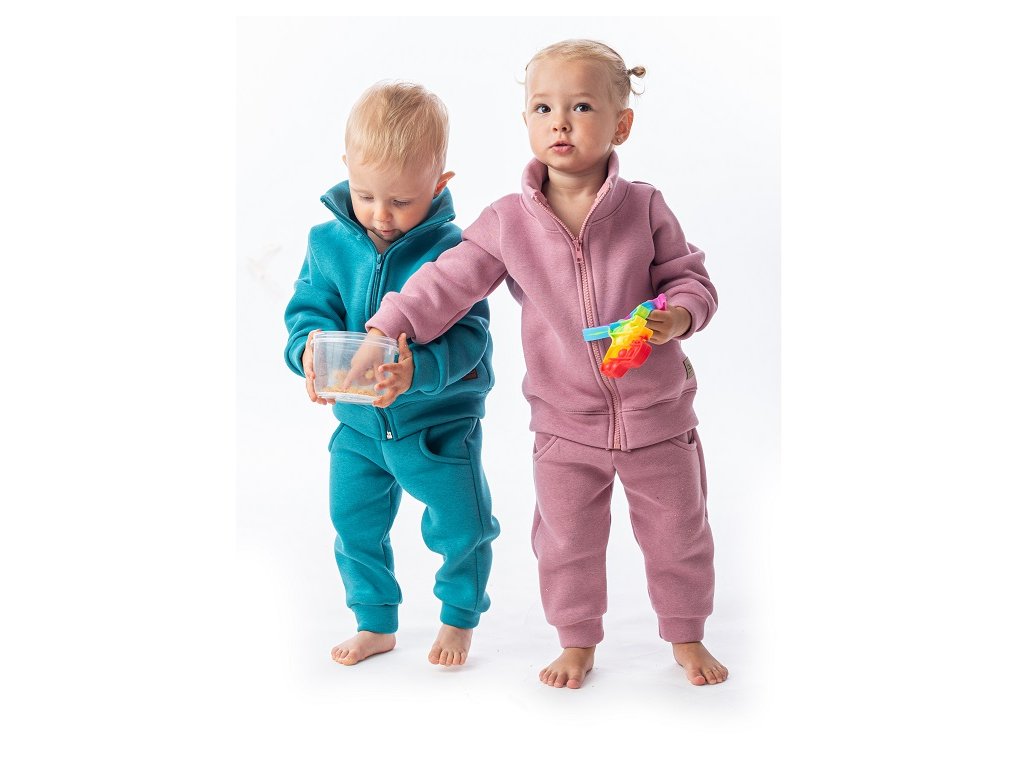 Dětská zateplená tepláková souprava se stojáčkem petrolej