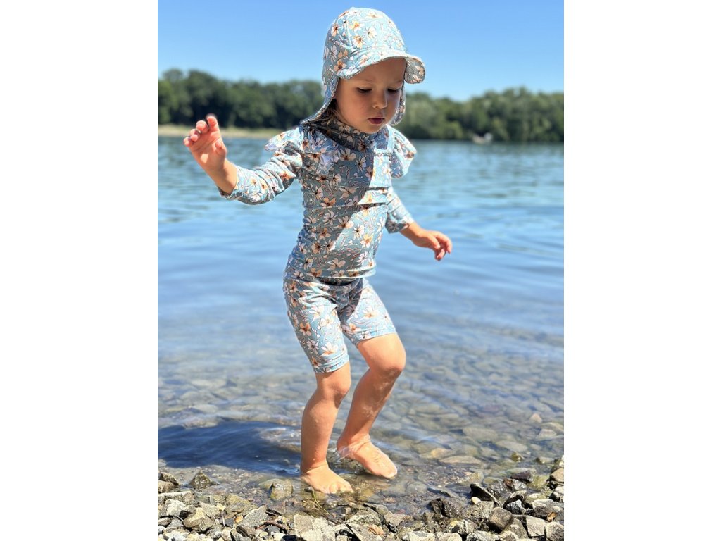 Elastický materiál s certifikací GRS je nejen šetrný k přírodě, ale i velmi pohodlný – přizpůsobí se každému pohybu a dobře drží tvar. Nadkolenní délka chrání pokožku, ale zároveň nebrání v pohybu při hrách, běhání ani vodních radovánkách.