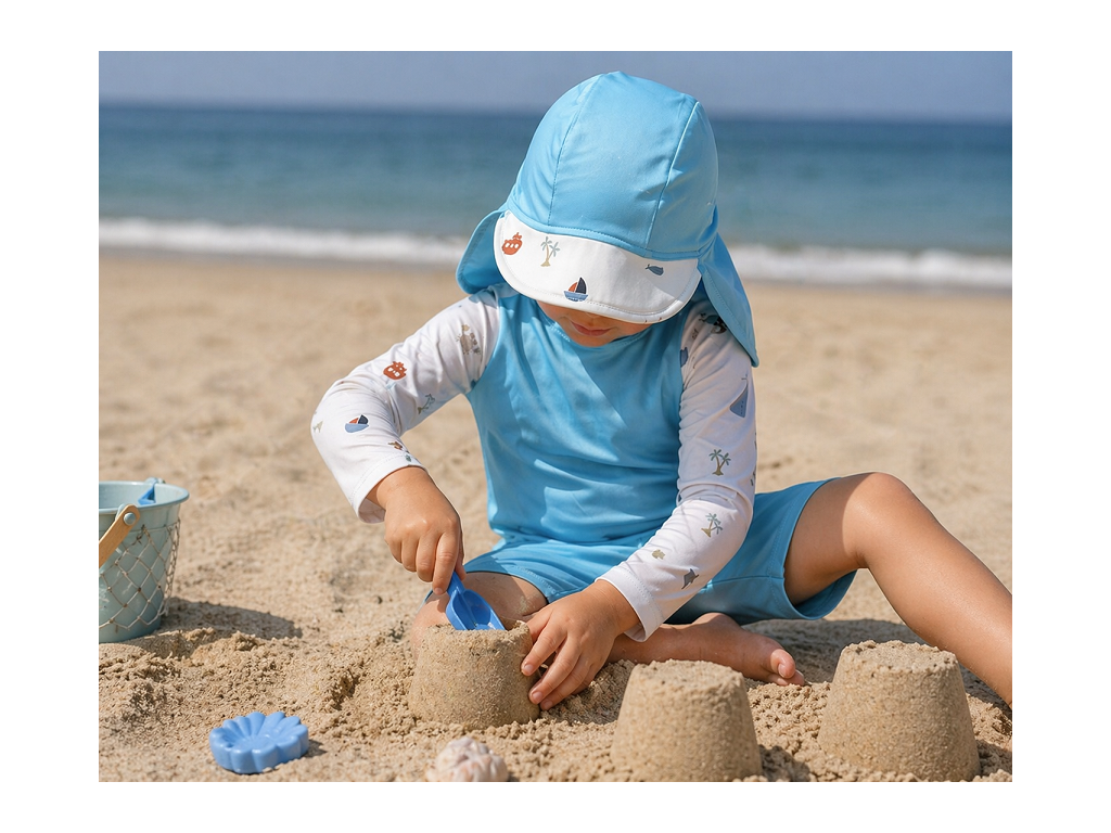 Roztomilá a praktická kšiltovka, která spolehlivě ochrání obličej i krk vašeho dítěte před sluncem. Díky prodlouženému zadnímu kšiltu je krk chráněný i při hrách v bazénu, na hřišti nebo v nosítku – prostě tam, kde klasická pokrývka hlavy nestačí.