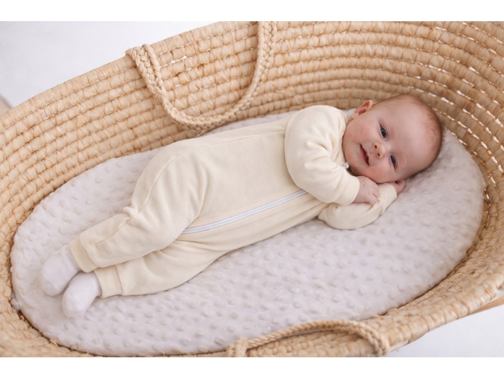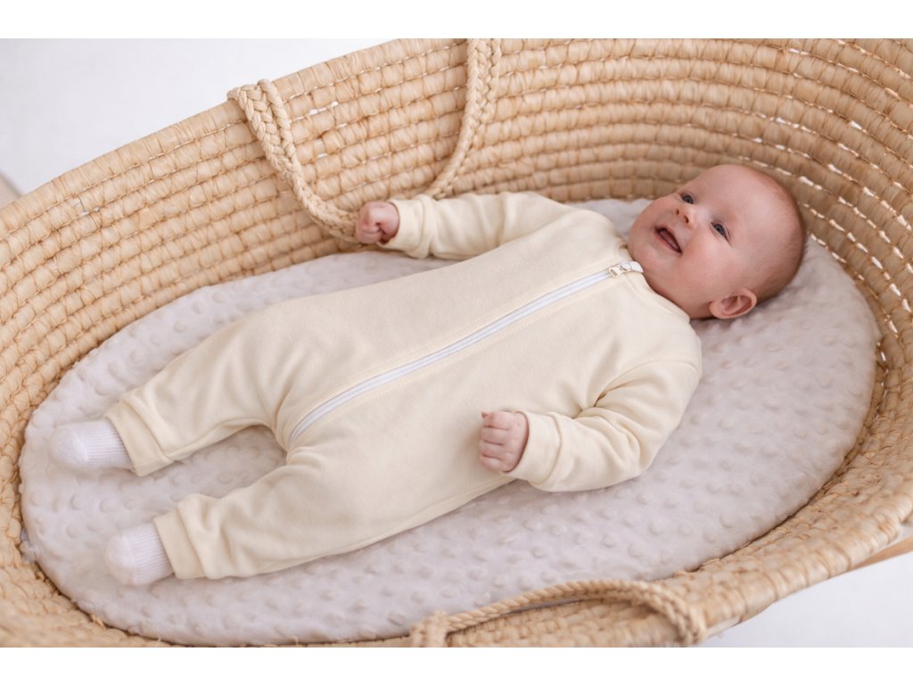 Je ušitý v srdci Moravy z certifikovaného materiálu a navržený tak, aby respektoval potřeby dětského tělíčka od prvních dnů života. Merino vlna jemně obepne pokožku, přirozeně reguluje teplotu a nechává kůži dýchat. Miminko je v teple, ale nikdy přehřáté. V suchu, v klidu, v pohodlí. Je to overal, ve kterém se dobře spí, dobře se mazlí i objevuje svět.