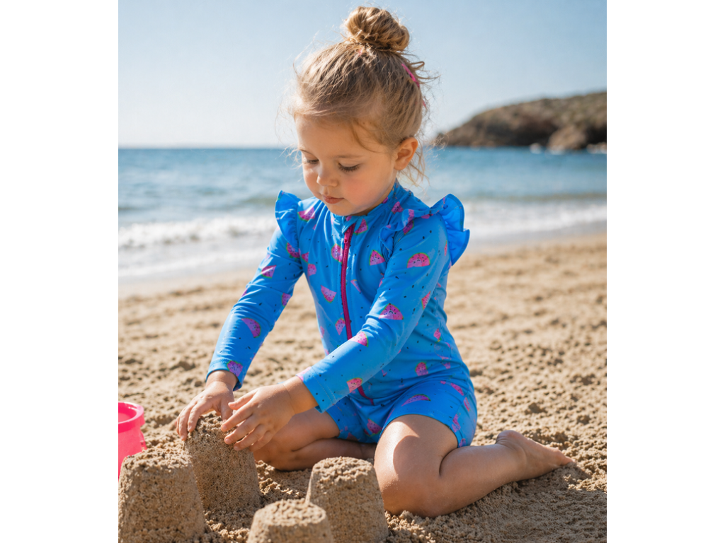 Lehká a pružná látka se skvěle přizpůsobí každému pohybu – ať už se dítě potápí, běhá po písku nebo staví vodní příkopy. Overal je nejen praktický, ale i stylový – a hlavně pohodlný.