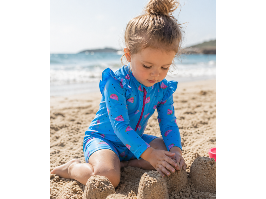Dopřejte svým malým dobrodruhům volnost v pohybu a naprostý klid na objevování světa – bez obav ze slunečních paprsků! Tento pohodlný overal z plavkoviny s UV ochranou UPF 50 je ideální volbou pro letní dny plné her a koupání. Už žádné neustálé mazání opalovacím krémem – ochranu má dítě rovnou na sobě.