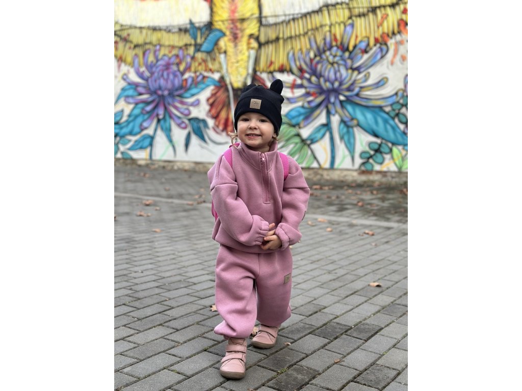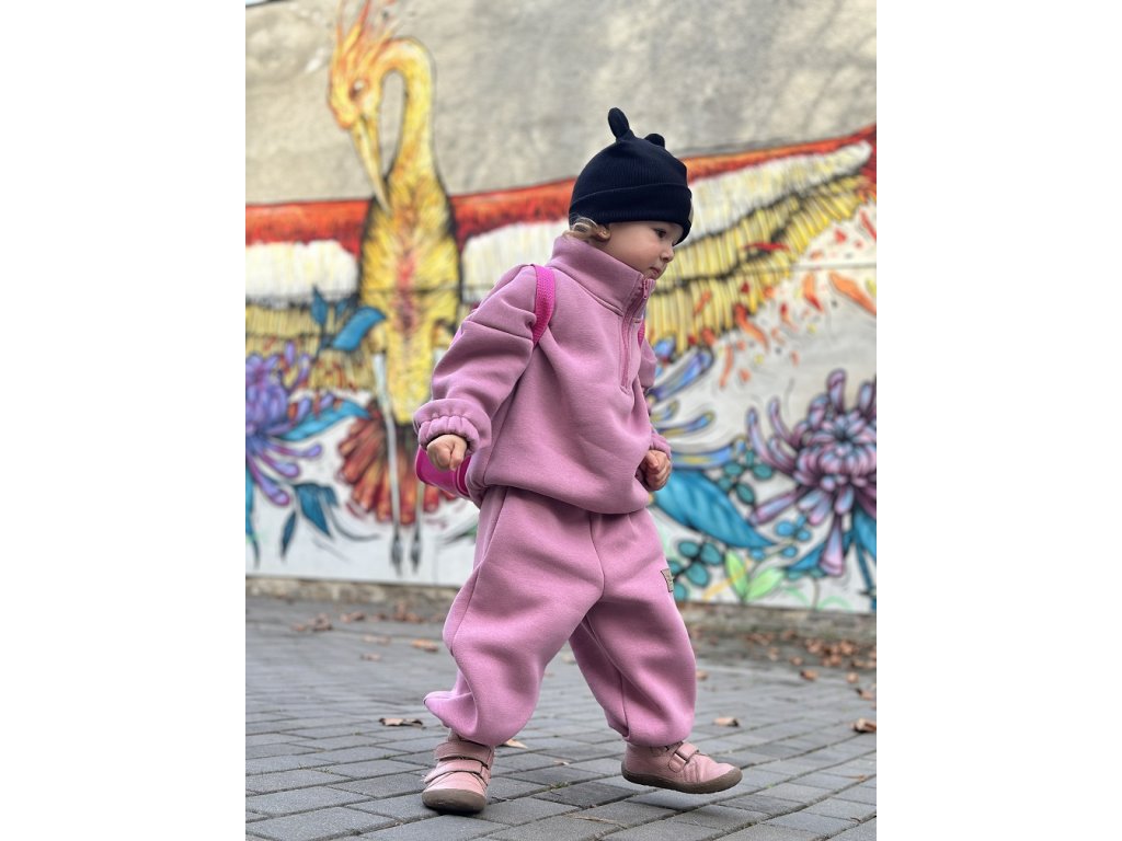 Je ušita ze silnější počesané teplákoviny, která má z vnitřní strany hřejivý chloupek, což z něj dělá materiál skvělý do chladnějšího počasí,