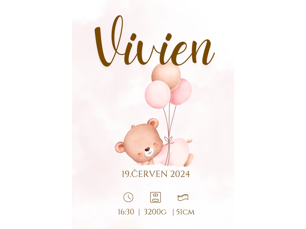 Všechny údaje o miminku, které mají být uvedeny na plakátu, prosím napište v posledním kroku objednávky (po vyplnění osobních údajů) do pole „Poznámka pro prodejce“. Následně vám zašleme návrh ke schválení e-mailem. Tisk probíhá až po vašem odsouhlasení návrhu.