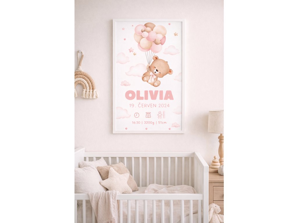 Tento jemný personalizovaný plakát zachycuje to nejdůležitější: jméno miminka, datum a čas narození, váhu i délku. Vše přehledně, citlivě a v moderním designu, který dokonale zapadne do každého dětského pokojíčku.