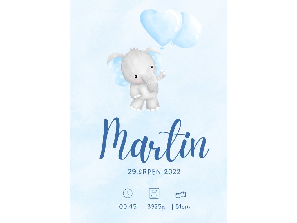 Všechny údaje o miminku, které mají být uvedeny na plakátu, prosím napište v posledním kroku objednávky (po vyplnění osobních údajů) do pole „Poznámka pro prodejce“. Následně vám zašleme návrh ke schválení e-mailem. Tisk probíhá až po vašem odsouhlasení návrhu.