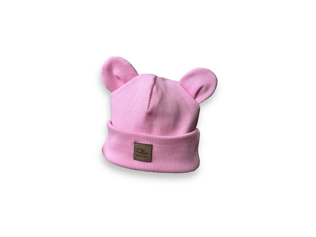 Přechodová čepička medvídek světle růžová 0-1 rok