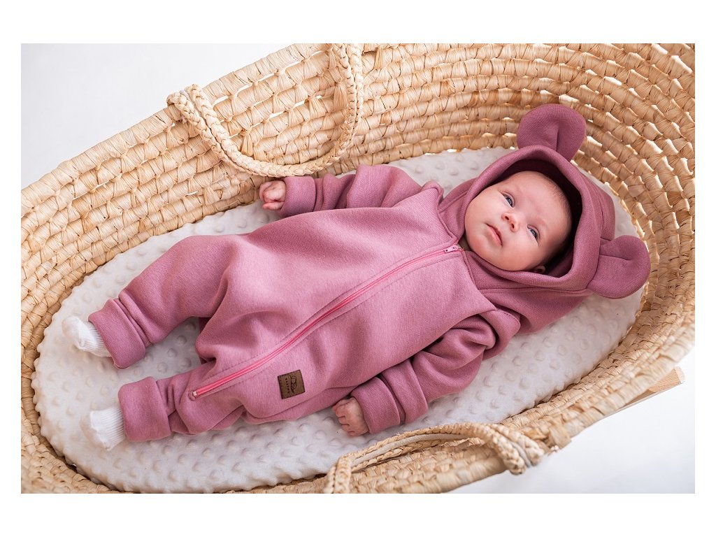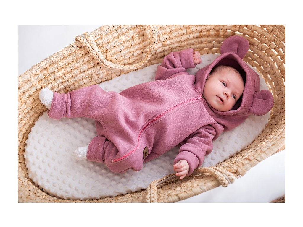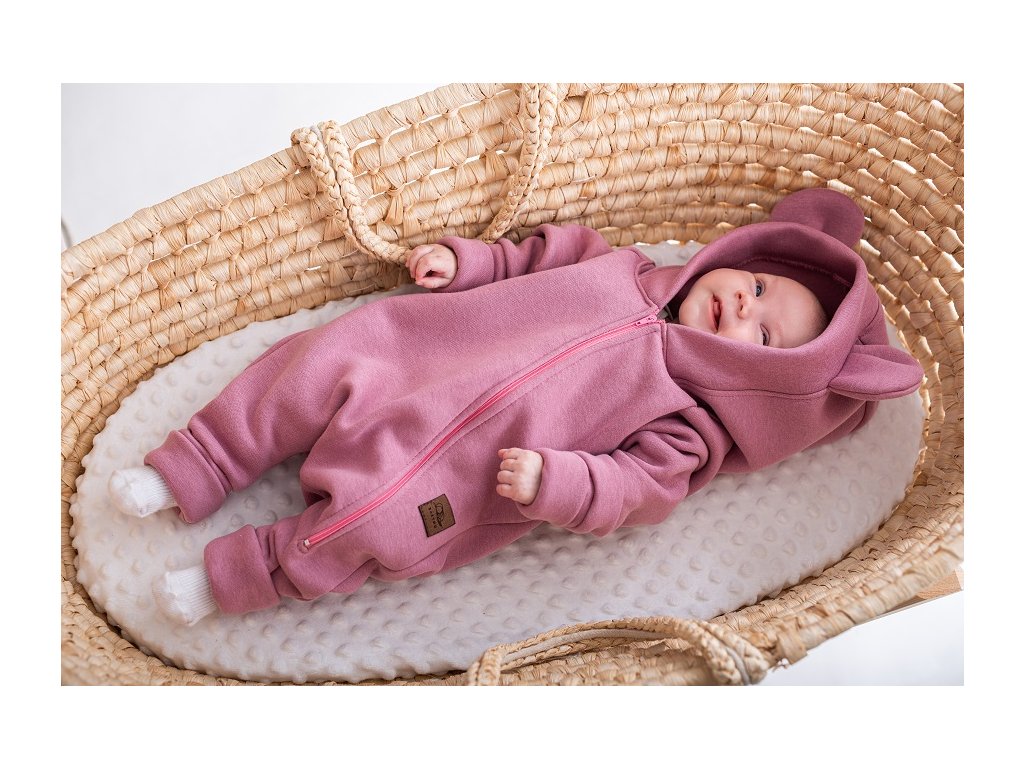 Velice praktický overal s kapucí a roztomilými oušky je vyroben z velmi příjemného a teplého bavlněného materiálu.