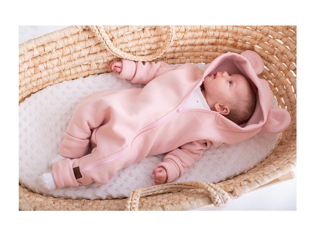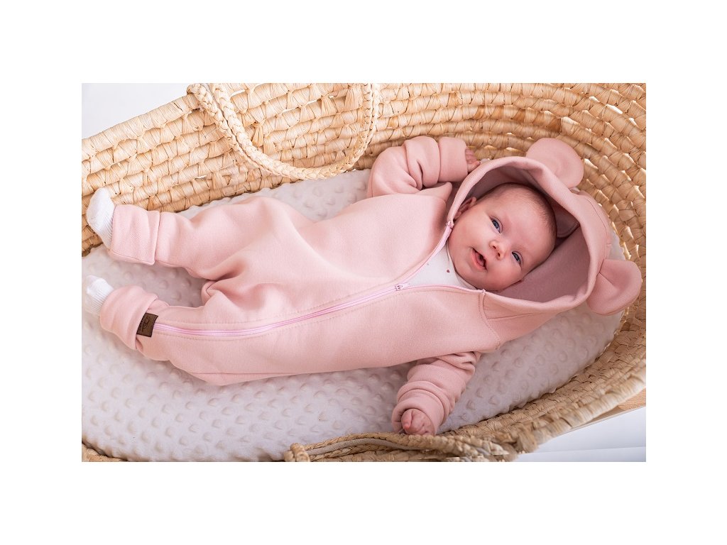 Velice praktický overal s kapucí a roztomilými oušky je vyroben z velmi příjemného a teplého bavlněného materiálu.