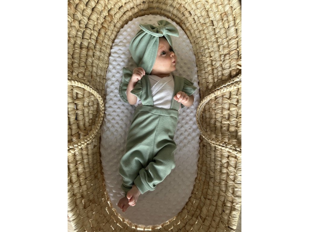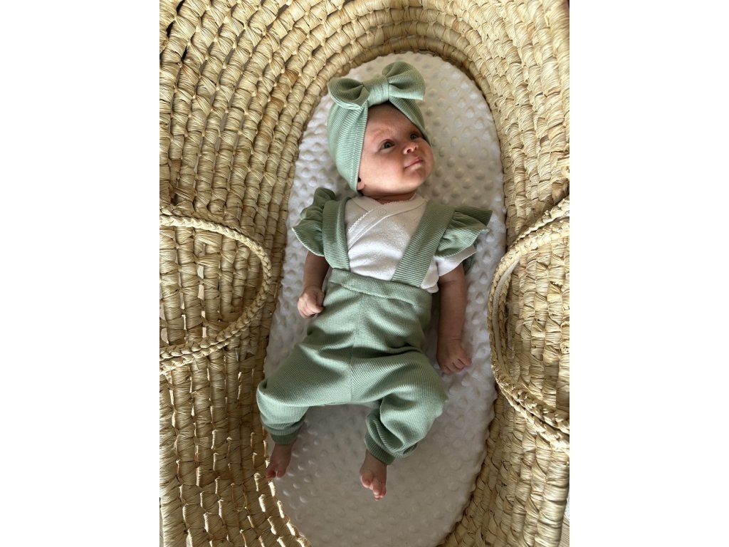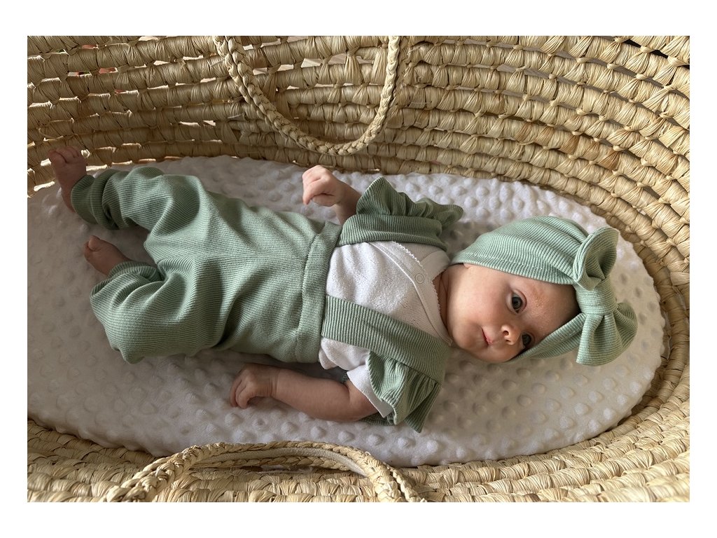 Hledáte outfit, ve kterém vaše miminko zazáří? Tento ručně šitý set je přesně to, co potřebujete. Trakáčky s výraznými volánky a stylový turbánek s mašlí tvoří dokonalý komplet, který zaujme na první pohled – a zůstane nezapomenutelný na každé fotce.
